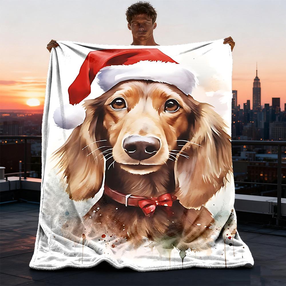 1pc Christmas dog Outdoor Soft Polyester Flannel Throw Blanket Versatile for All Seasons , Soft , Cozy , Warm All Season Quilted Throw ,