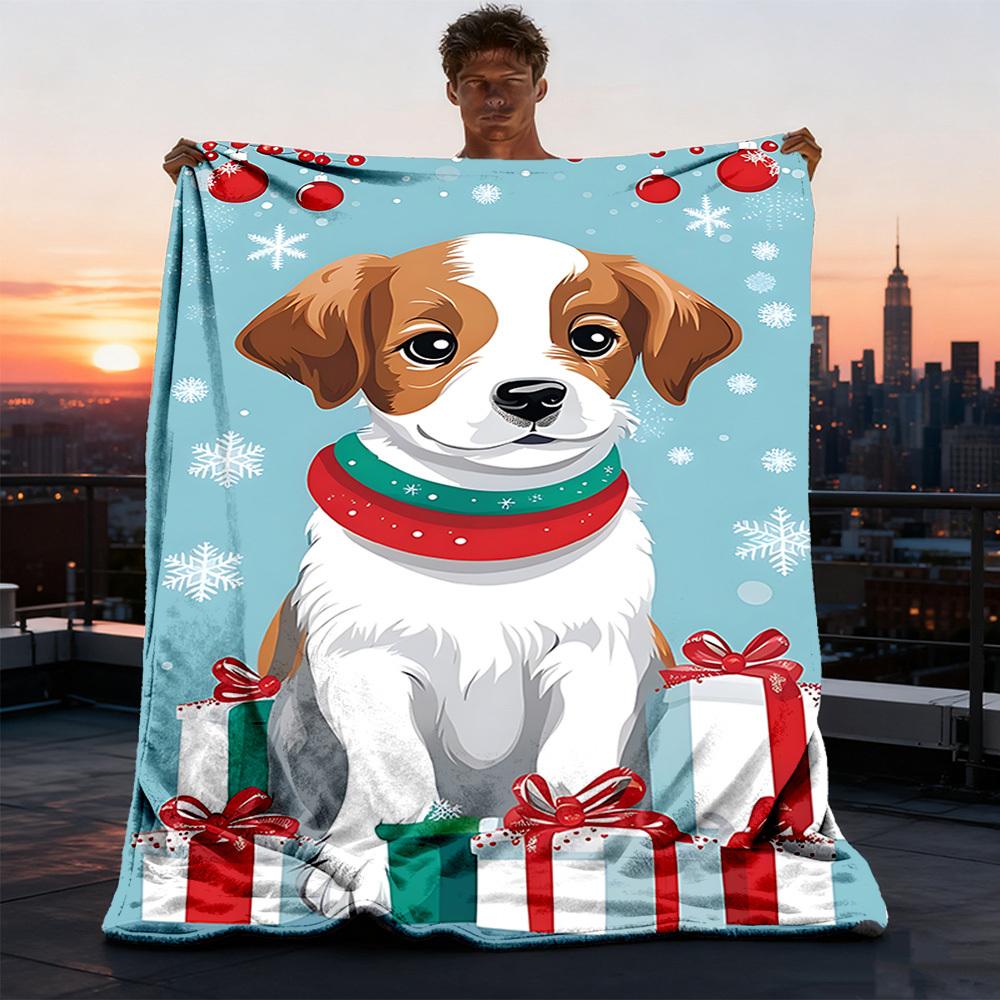 1pc Christmas dog Outdoor Flannel Blanket , Machine Washable Perfect Gift for Birthday , Holiday Travel Accessory , Durable Material
