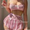 Sexy lingerie lace perspective splicing three-point bra set mesh garter belt women