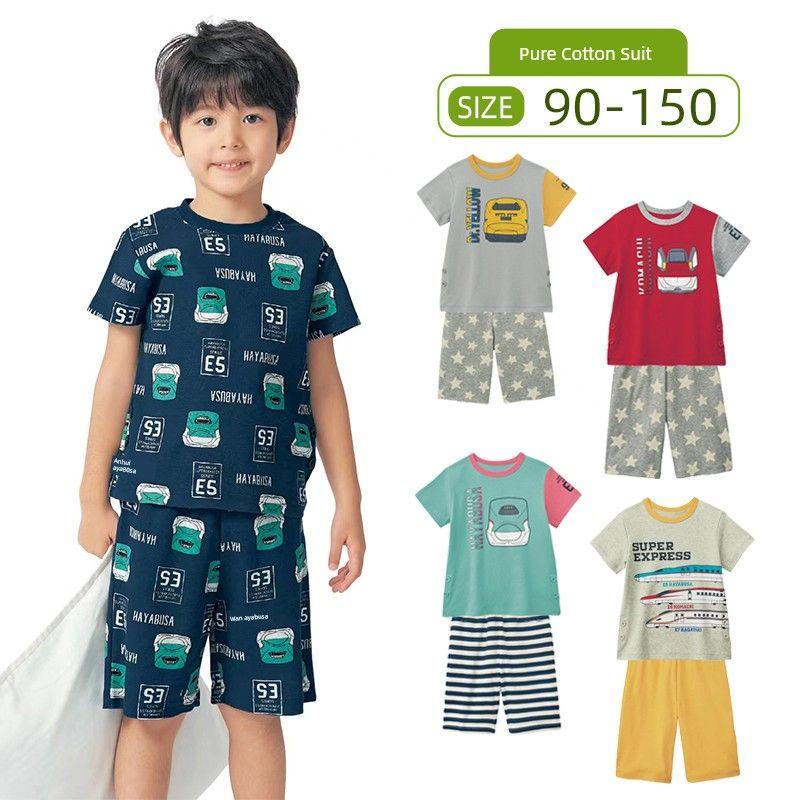 Summer Boys' Home Wear Suit Pure Cotton Kids Thin Short-Sleeved Shorts Two-piece Set Air Conditioning Clothes Motor Car 90-150