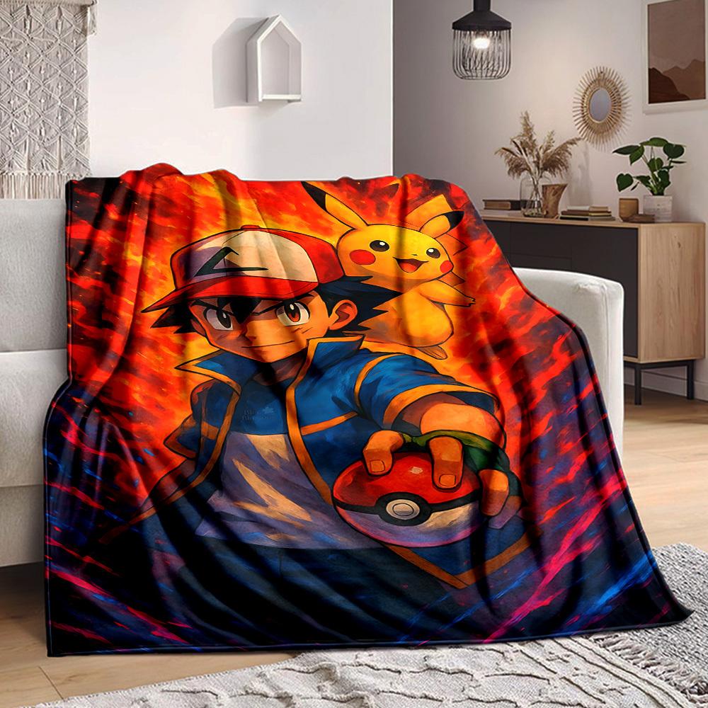 1pc Pokemon Flannel Throw Blanket HD Printed Lightweight Soft Warm All Season Blanket for Sofa, Bed, Travel, Camping Machine Washable