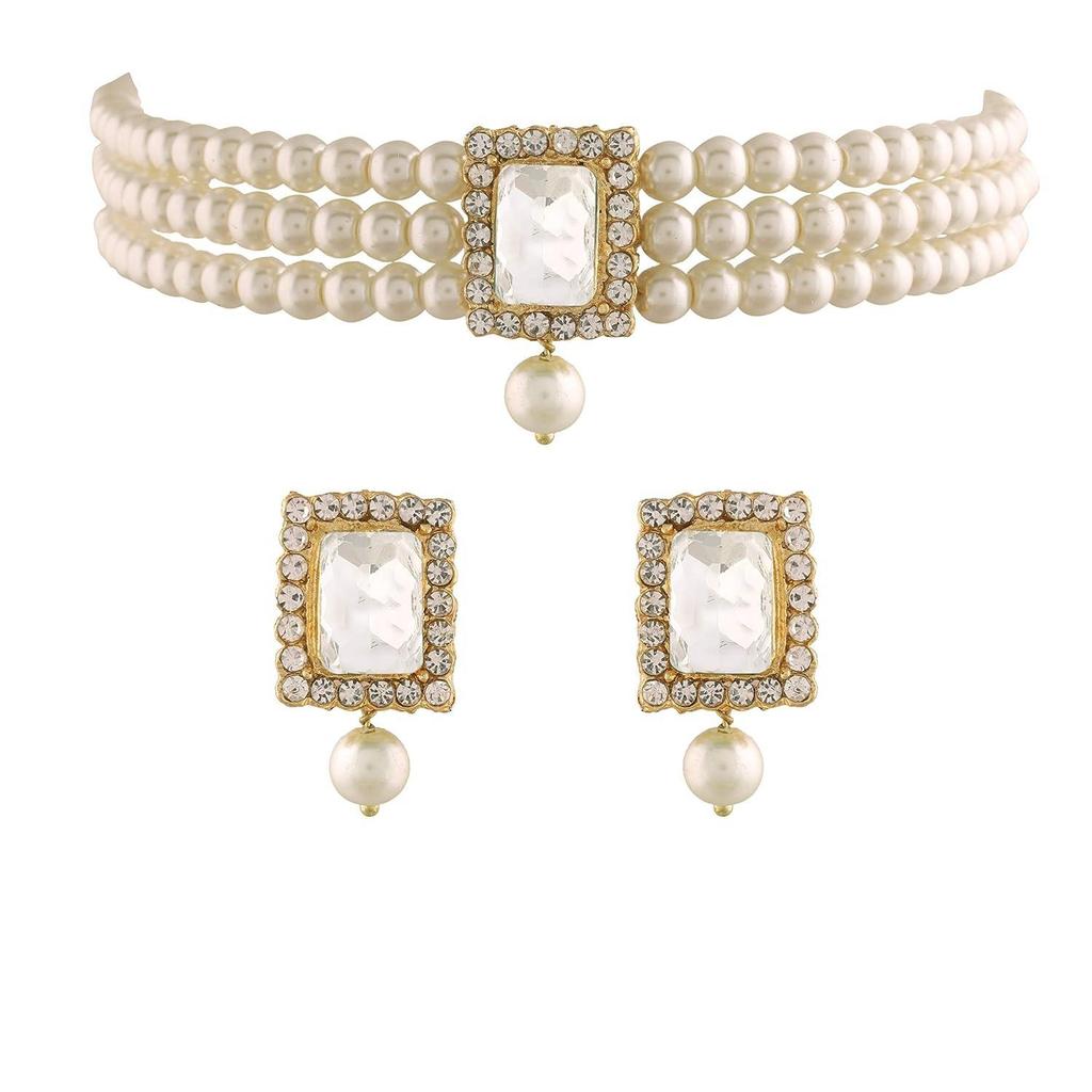 Collar Choker Tradicional de Piedra y Perla Chapado en Oro Juego de Joyería para Mujer