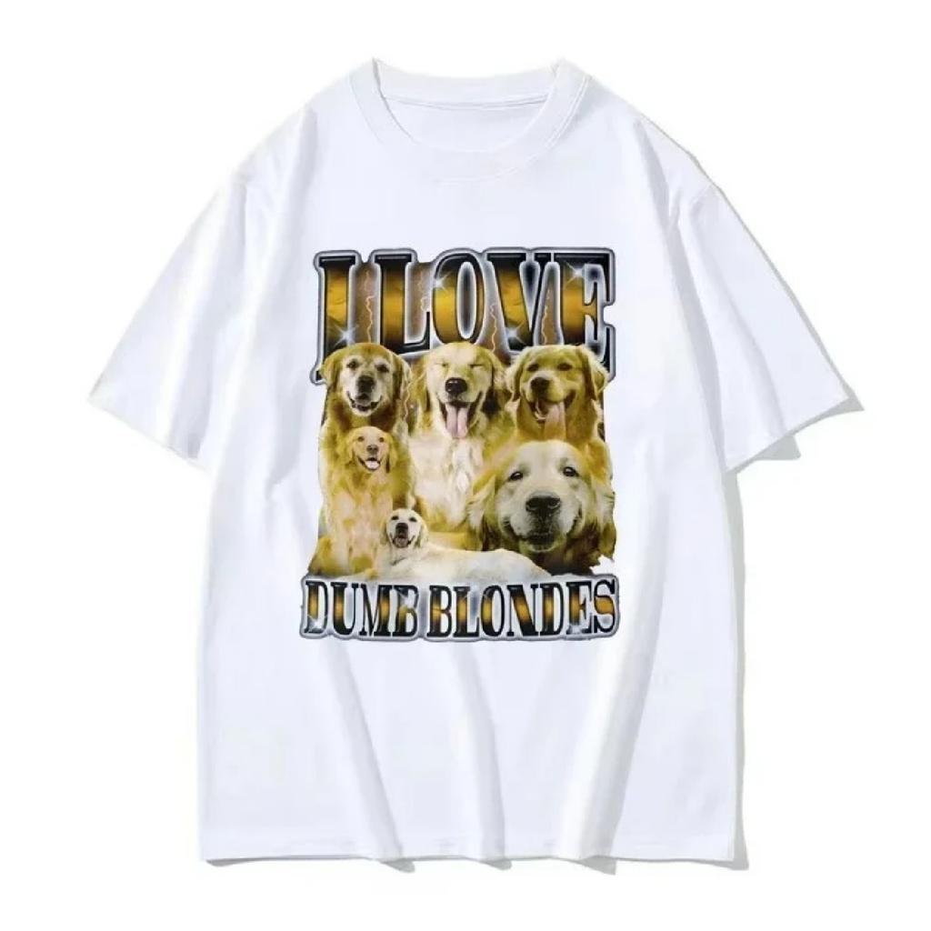 Summer men I Love Dumb Blondes English Golden Retriever printed T-shirt Retro Gothic cotton short-sleeved Y2k streetwear