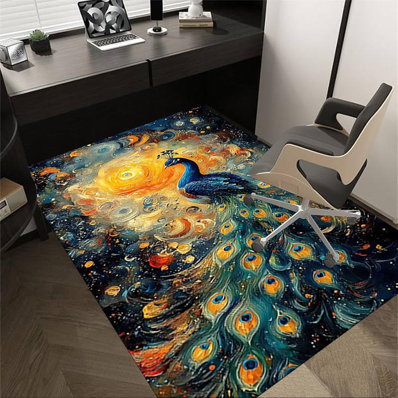 1pc peacock abstract Carpet Anti Slip Polyester Floor Mat for office.Bedroom