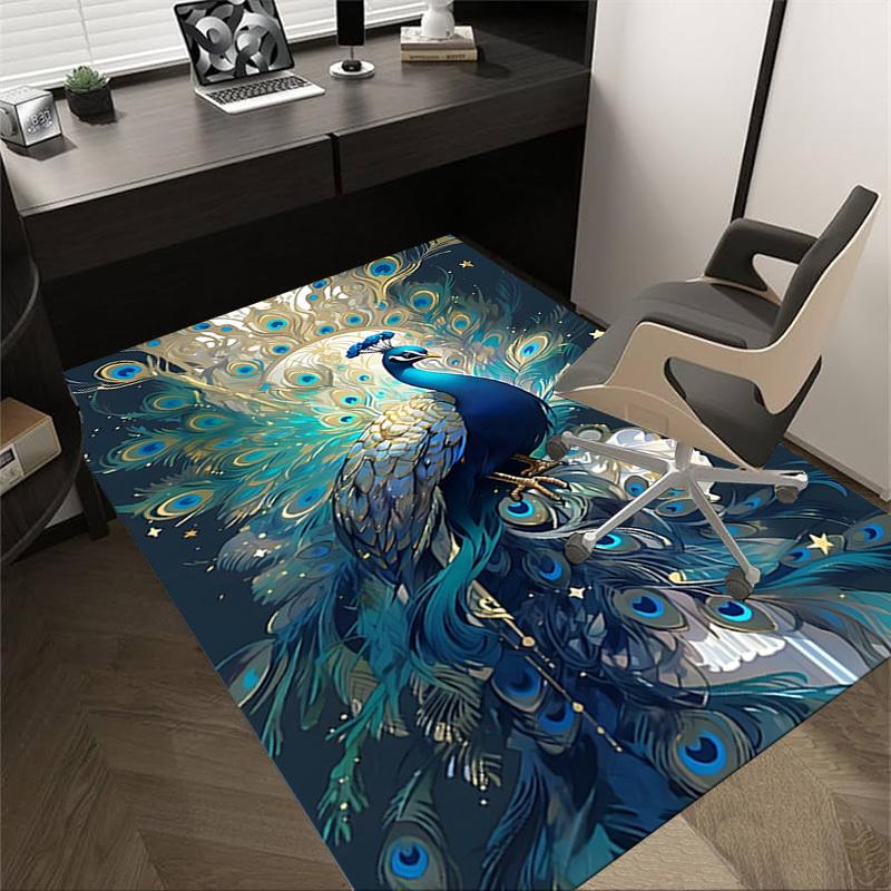 1pc Peacock Feathers Carpet Anti Slip Polyester Floor Mat for office.Bedroom