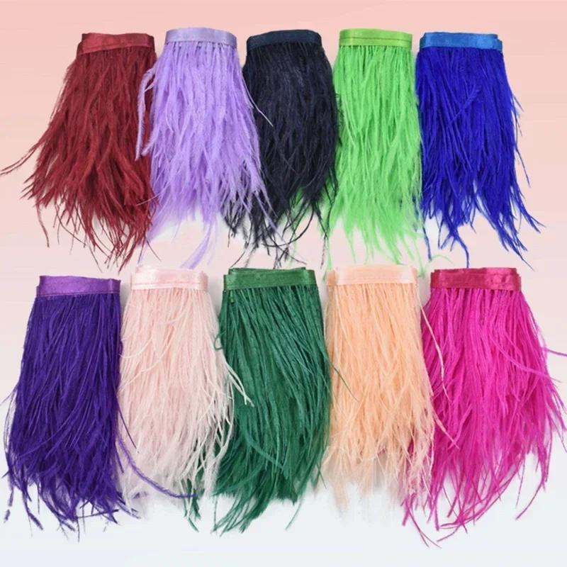 Pluma1Metro Plumas de Avestruz de Colores sobre Cinta Fleco Borla Adorno Cinta 10-15cm 4-6" Adornos de Plumas Blancas Decoración para Decoración de Ropa