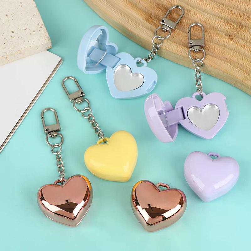 1Pcs Heart Shape Mini Empty Blush Powder Box Eye Shadow Container With Mirror And Aluminum Pan Key Chain Lipstick Case Packaging