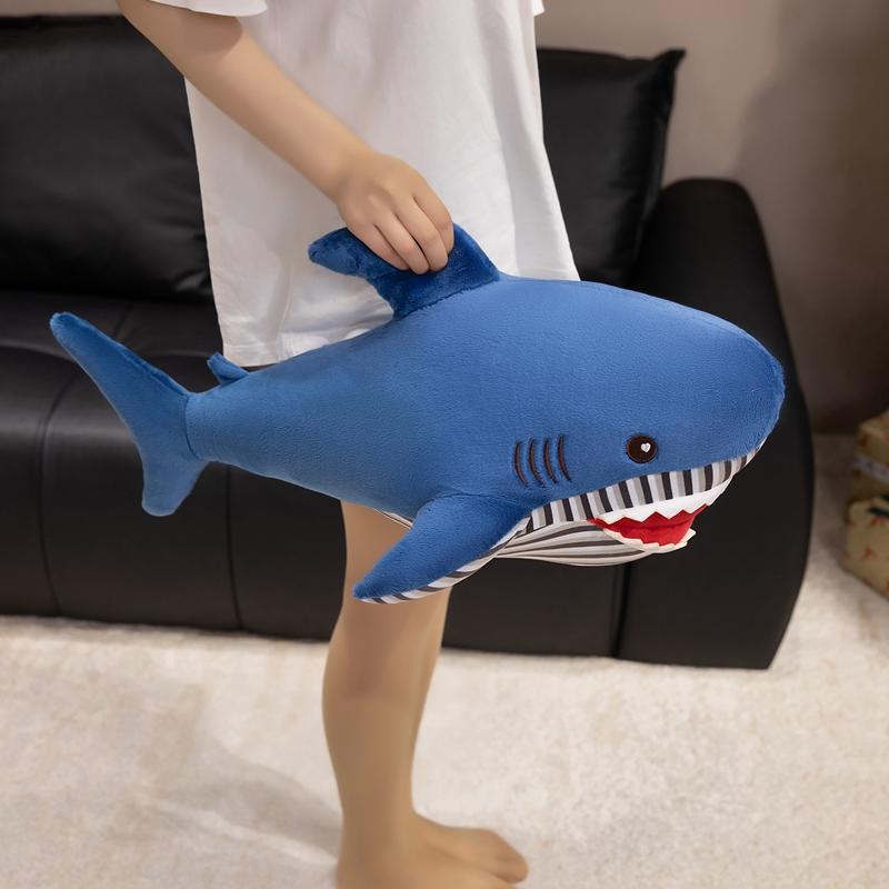 Fluffy Big Size Cute Shark Doll Plush Toy Blue Pink Shark Throw Pillow Shark Sharp Big Teeth Red Mouth Classic Birthday Gift