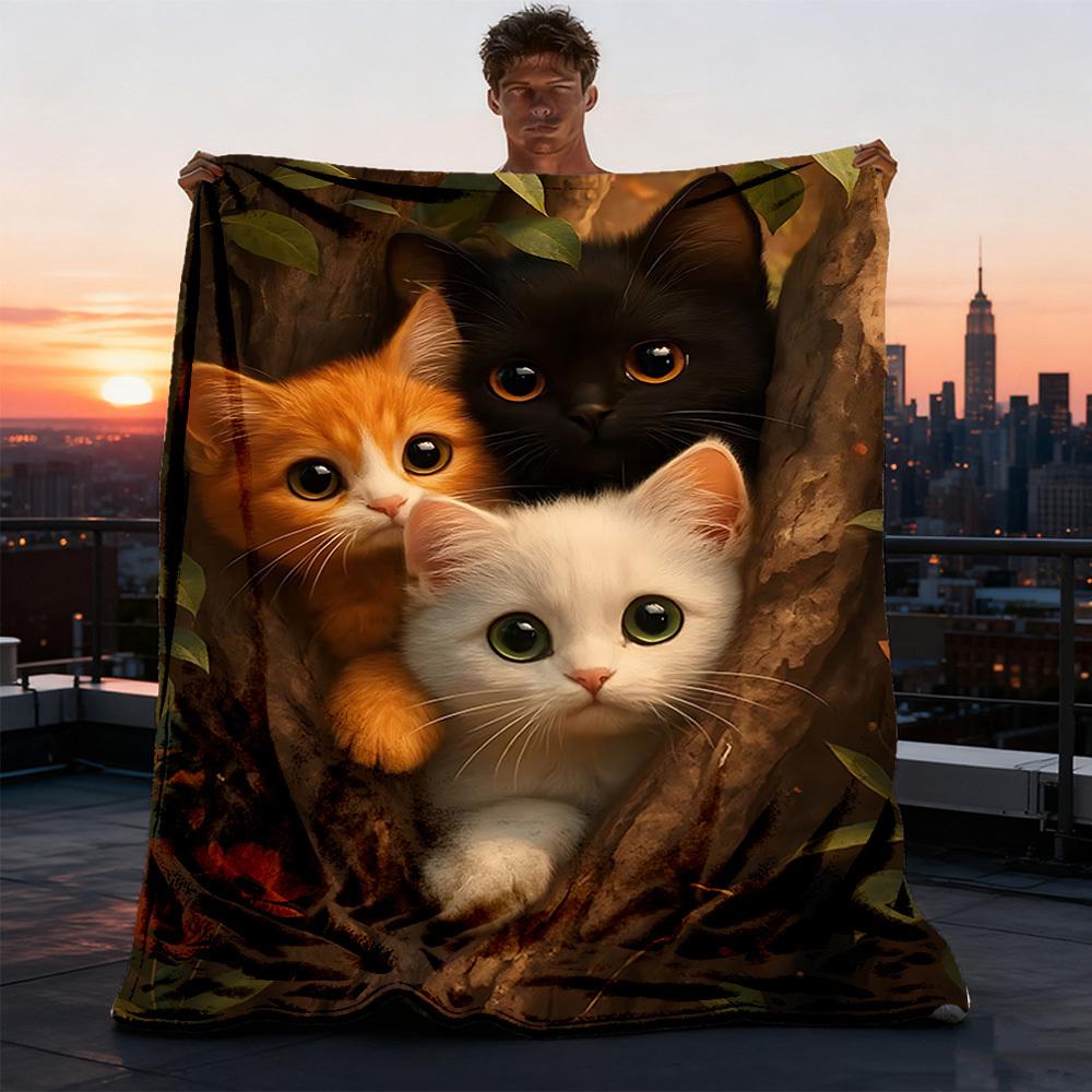 1pc Cat Treehouse Outdoor Flannel Blanket Gift For Boys Girls Adults, Family Friends