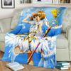 Sakura 3D Cute Card Captor Anime Cartoon Blanket,Soft Throw Blanket for Home Bedroom Bed Sofa Picnic Office Cover Blanket Kids