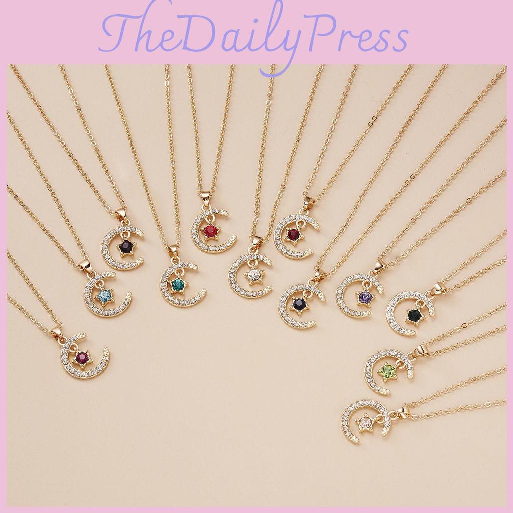 12 months birthday stone moon star birthday stone pendant necklace for women crystal gold clasp chain, easy to match with your daily clothes and comfortable to wear.