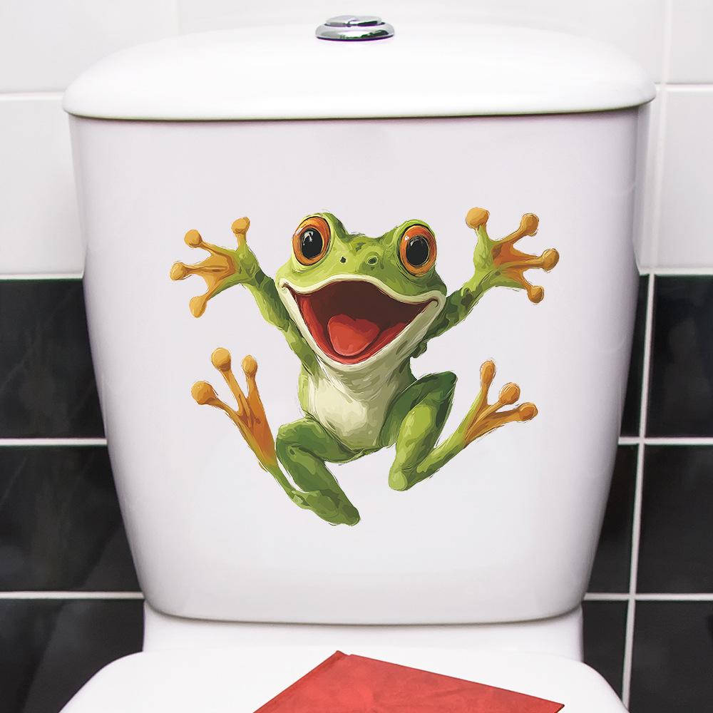 Funny Big-Eyed Cartoon Frog Toilet Seat Sticker Bathroom Decor Removable Self-Adhesive Decal