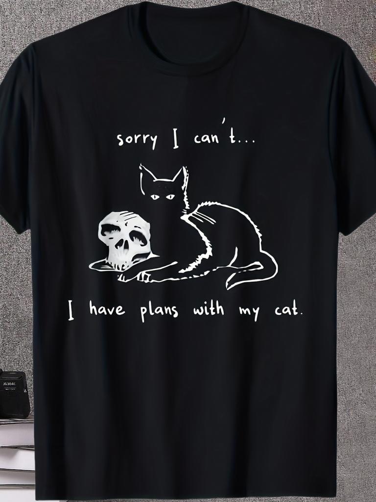 Black Cat Skull Graphic print Men TShirt Cotton Oneck shortsleeved Tee Tshirts Unisex casual daily outdoor TShirt Oversized