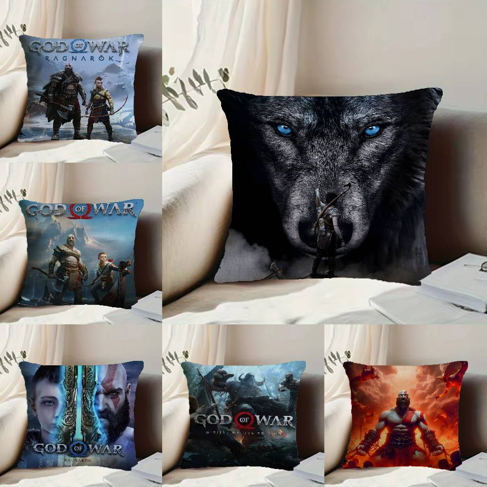 Anime G-God of W-War Ragnarok Pillow Case Anti-dustmite Pillowcase Invisible zipper silky short plush Sofa cushion cover