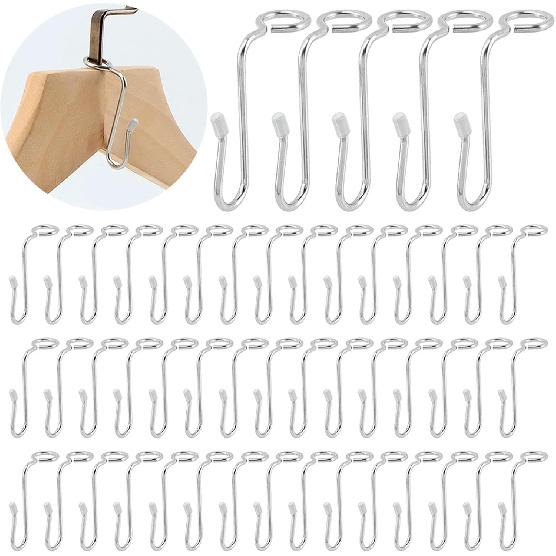 50 Pcs Stainless Steel + Silicone Hanger Connector Hooks, Space Saving Clothes Hanger Extender Hooks