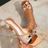 Zapatillas de Mujer Moda Punta Cuadrada Elegante Lazo Tira Única Sandalias de Tacón Alto Finas Verano Nuevo Lujo Sexy Exteriores Chanclas Doradas