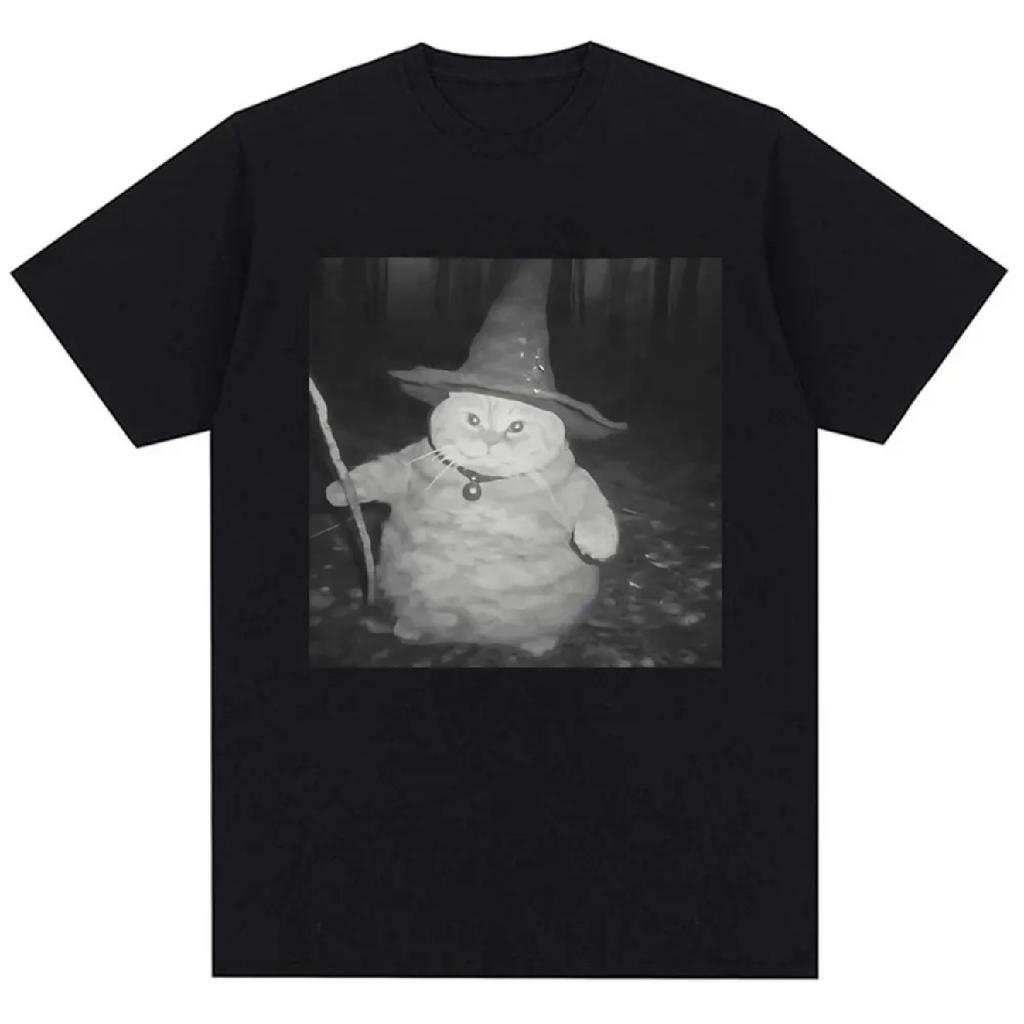 Camisetas Gráficas Divertidas de Gato Mago Gordo Meme Tendencia Humor Chiste Novedad Hombres Mujeres Manga Corta Oversize 100% Algodón Camiseta Vintage
