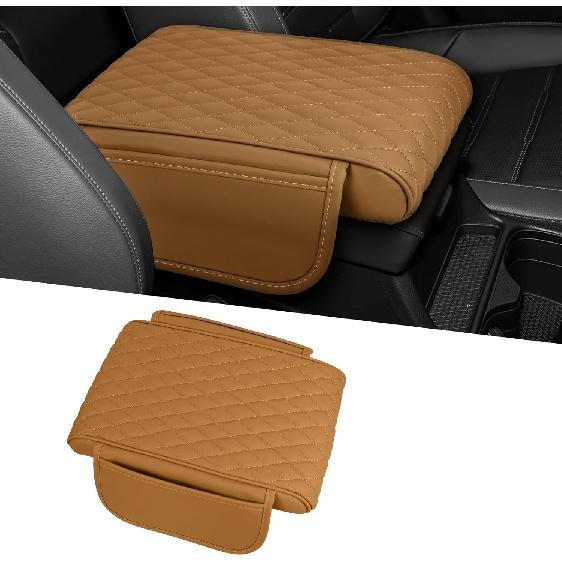Center Console Cover, 12.2"×8.27"×4.8" Arm Rest Cover for Car, Leather Brown