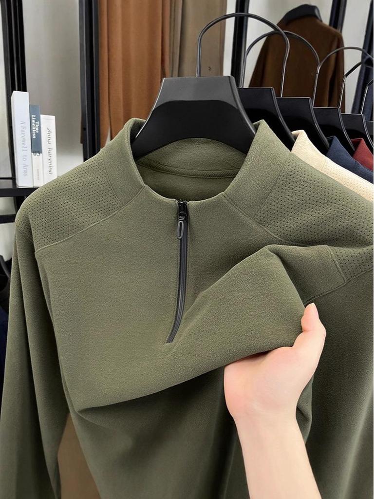 Men's Stand Collar Half-Zip Hoodie - Casual Autumn/Winter Long Sleeve Base Layer