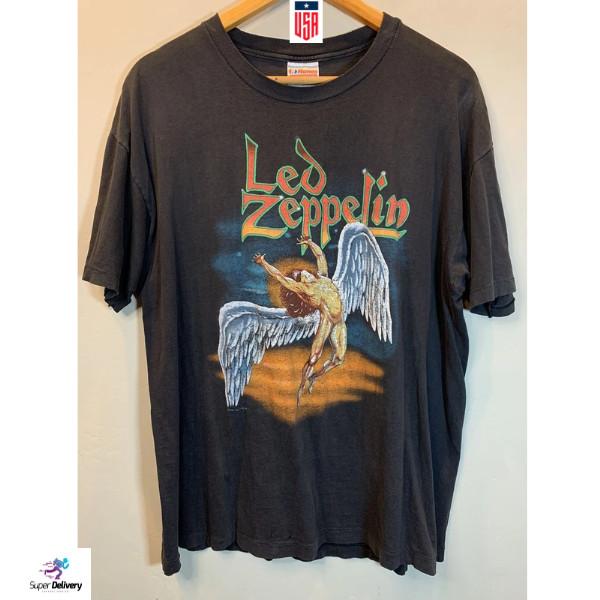 Camiseta Led Zeppelin Swan Song de los 80, Camiseta Vintage de Banda de Rock Negra Unisex S-5XL Camiseta Unisex