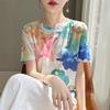 Summer Design Sense Round Neck Doo Beading Thin Short-sleeved Knit Shirt Top Female Casual Summer Essential Comfort and Style Slim Fit Pullovers Tees