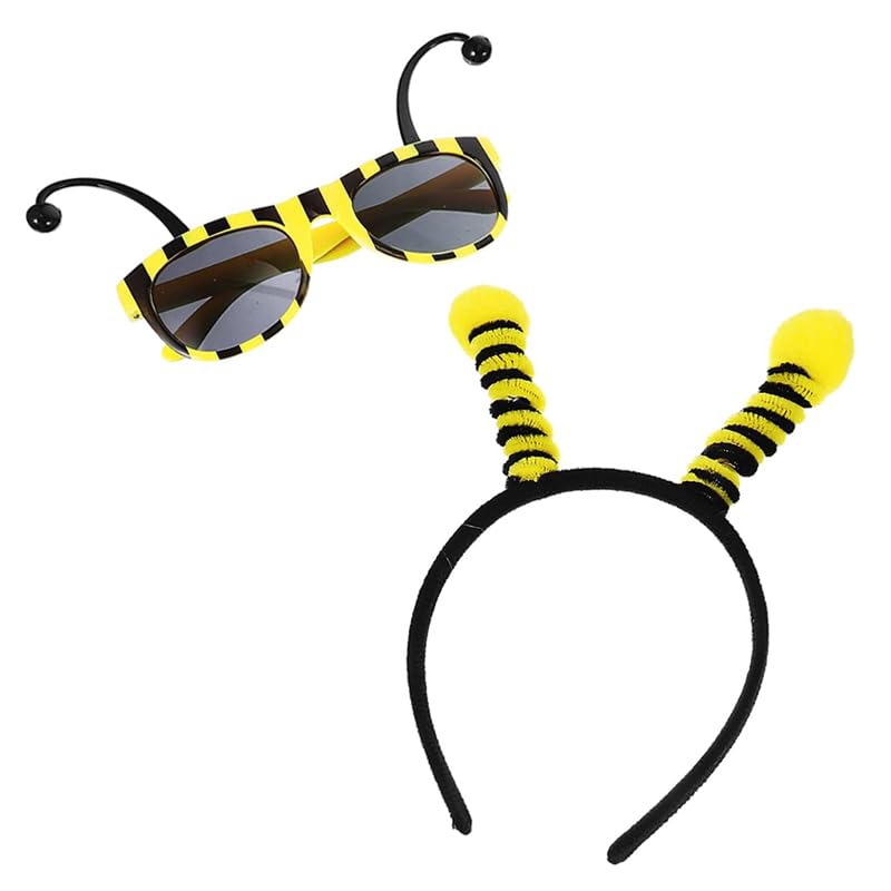 Set of 2 Bee Antenna Headbands with Hair Ties and Sunglasses for Cute and Funny Bee Headbands for and Aliens Prom, Parties, Insects,