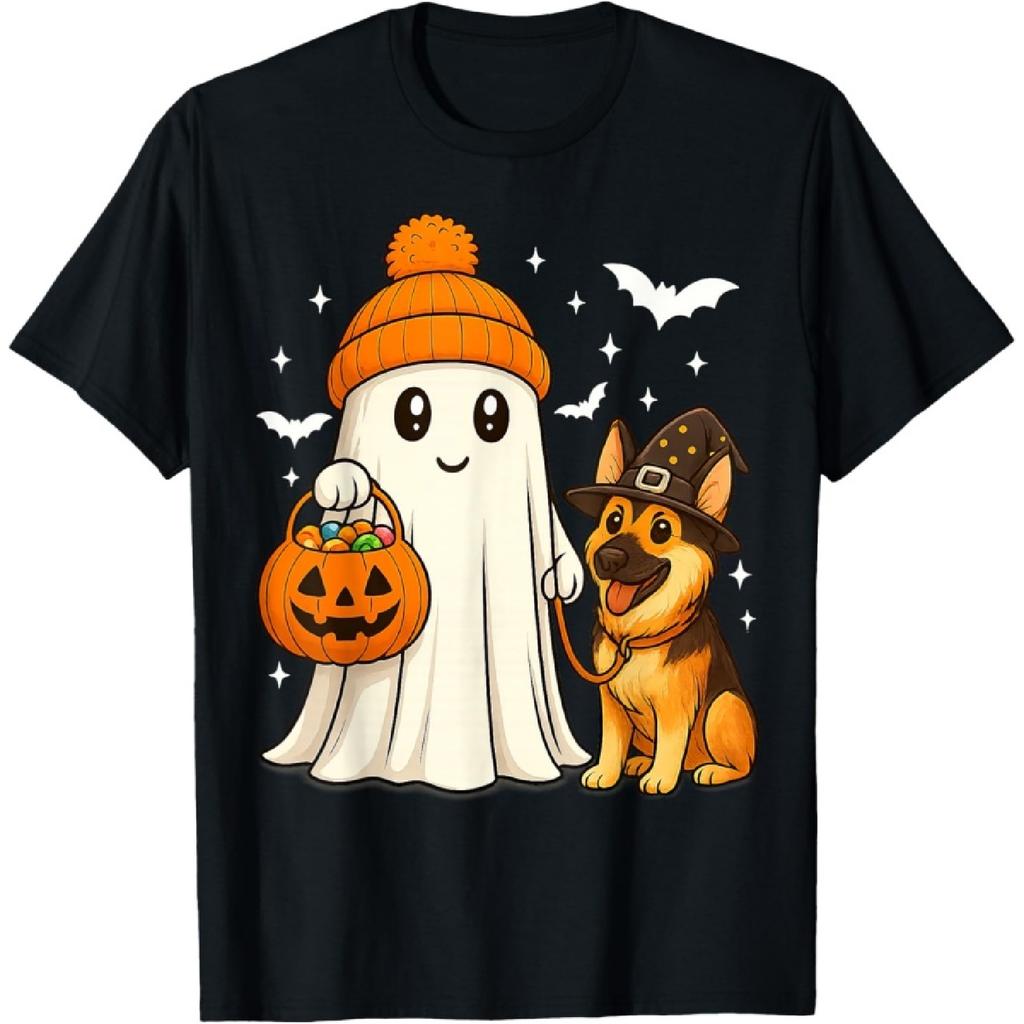 Ghost German Shepherd Dog Walking Halloween Spooky Costume T-Shirt