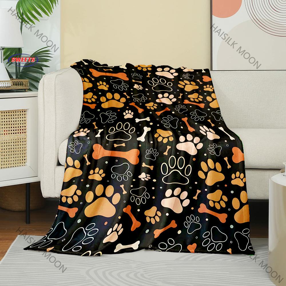 Multi-Size Cute Dog Bone and Paw Printed Throw Blanket, Bedding, Throw Blanket for Couch & Bed Great Gifts for Boys and Girls