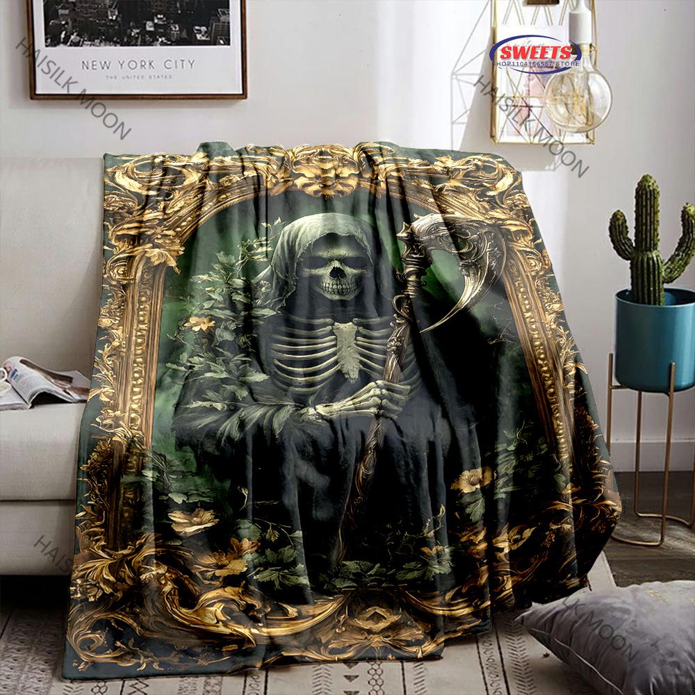 3D Diablo Horror Thriller Themed Reaper Print Blanket, Home Sofa Chairs Bed Office Travel Camping Blanket Gift for Male Friends