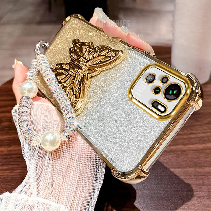Note10s Lanyard Plating Butterfly Holder Silicone Case For Xiaomi Redmi Note 10 Pro 10s 10pro 4g Shockproof Stand Cover Note10