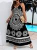Womens Printed Dress With V-Neck And 3/4 Sleeves Loose Fit Vintage Printed Babydoll Dress