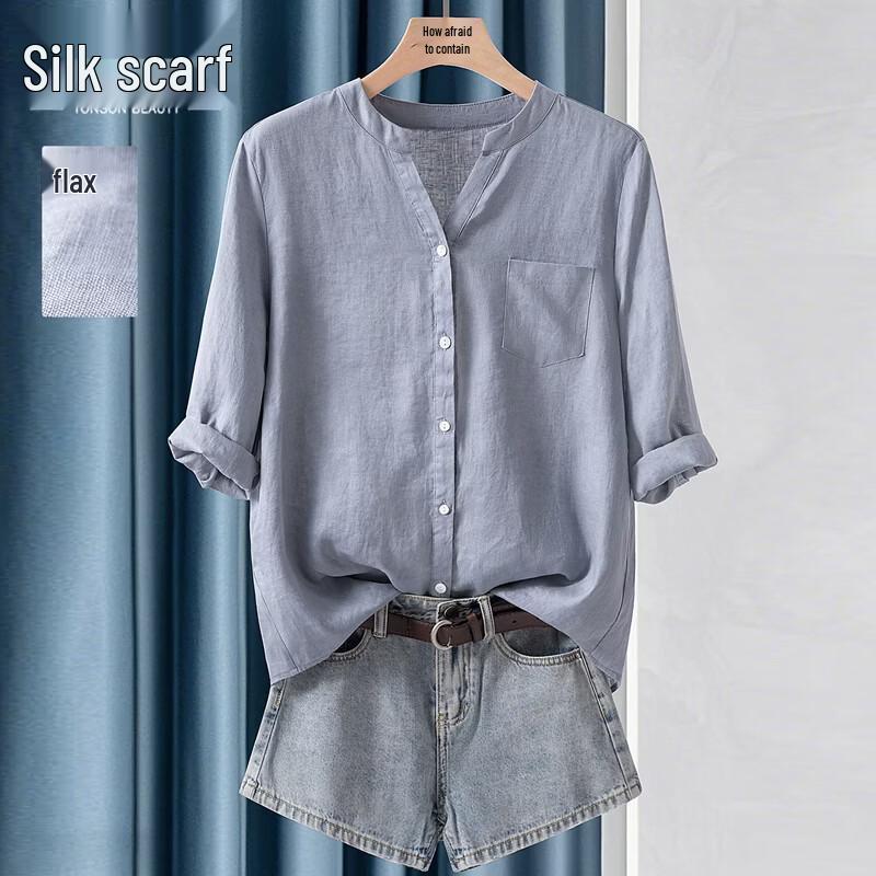 Camisa de Lino para Mujer de Corte Holgado con Cuello en V