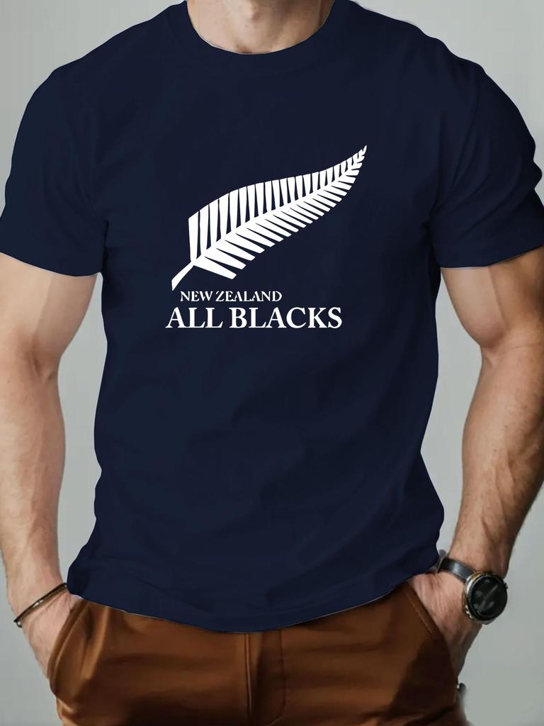 MenS 100 Cotton TShirt with New Zealand All Blacks Feather Design Casual Crew Neck Regular Fit Slight Stretch Knit Fabric