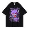 Pokémon Gengar Printing Tee Pure Cotton Tshirt Mens 2026 Summer Fashion Oversize Street Casual Y2K Tops Streetwear Clothing