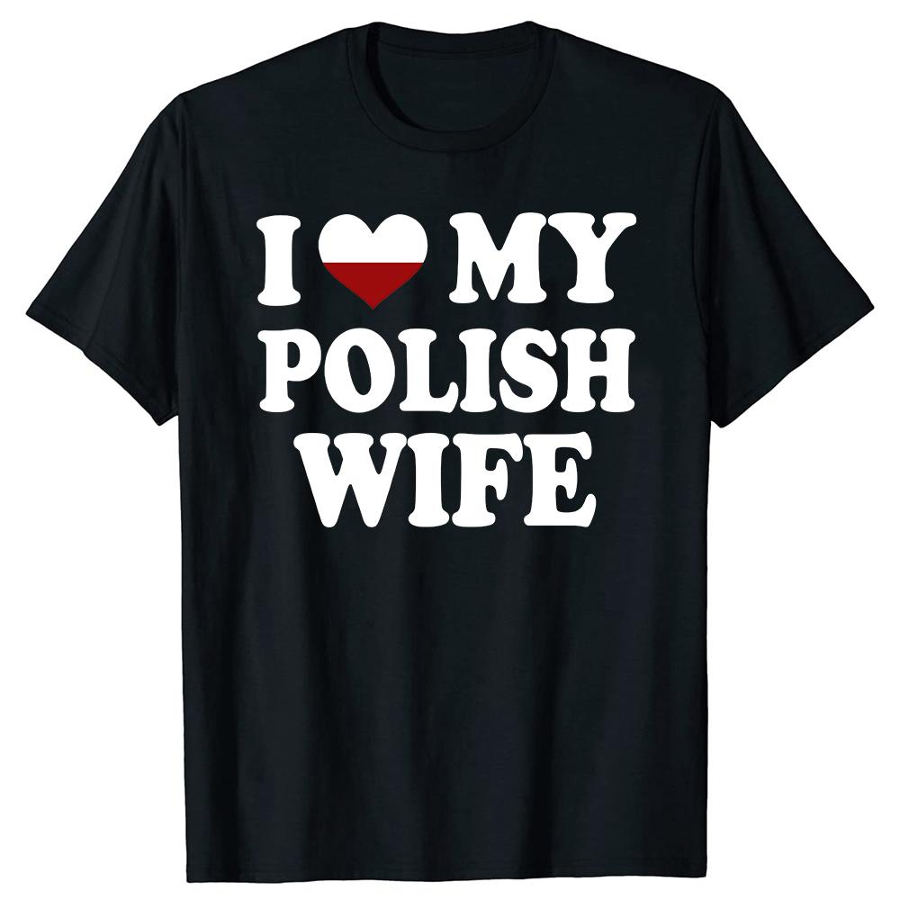 Funny I Love My Polish Wife T Shirts Graphic Cotton Streetwear Short Sleeve Birthday Gifts Heart My Poland Wife Tshirt Men