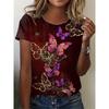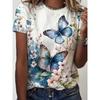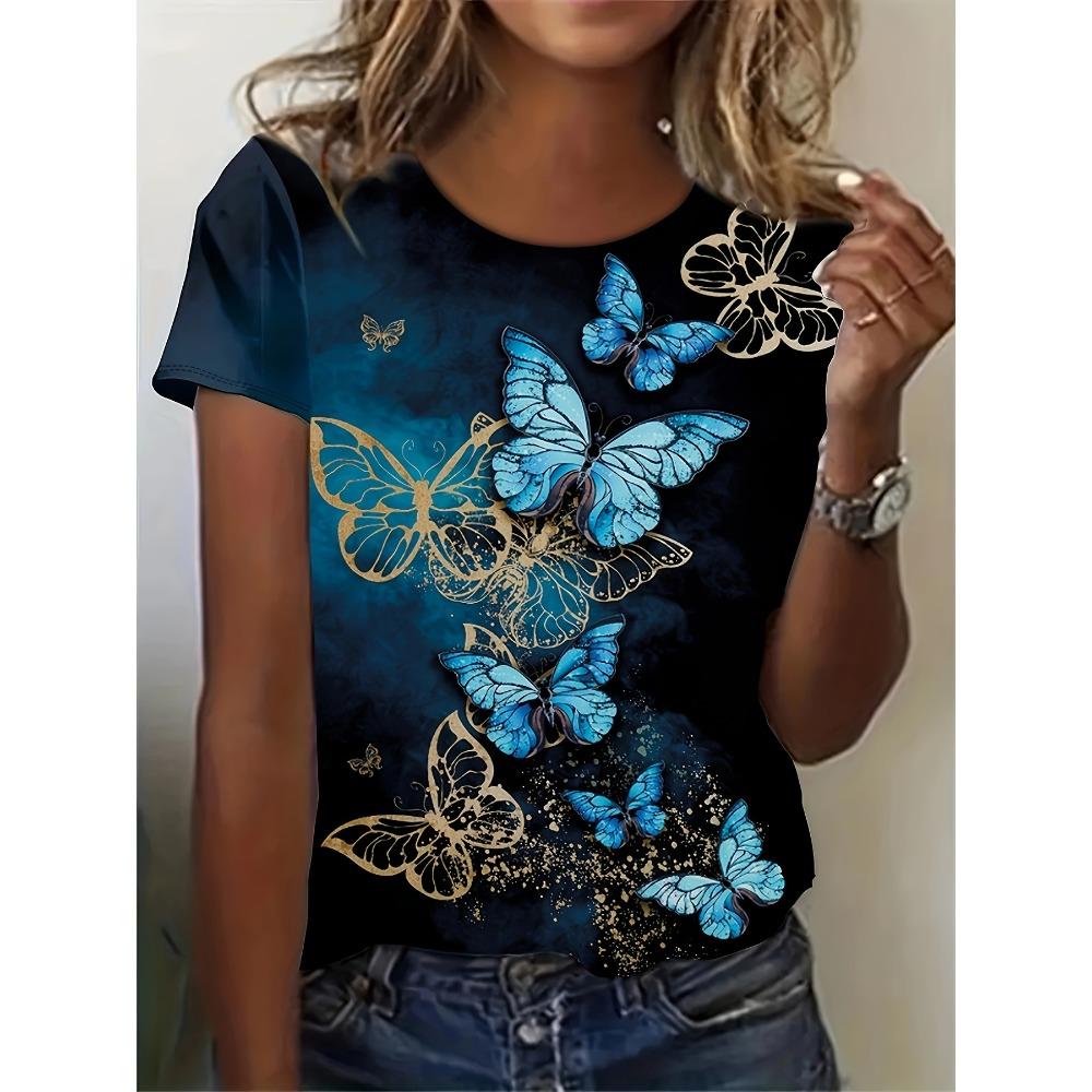 T-shirt Women's Summer Casual Round Neck Short Sleeve Butterfly Pattern Top Loose Casual Wear Ladies T-shirt
