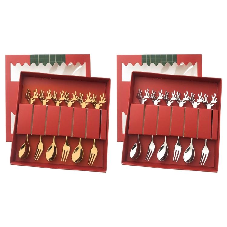6 Pieces Cake Spoon Tasting Dessert Forks Christmas Themed 2 Colors for Party