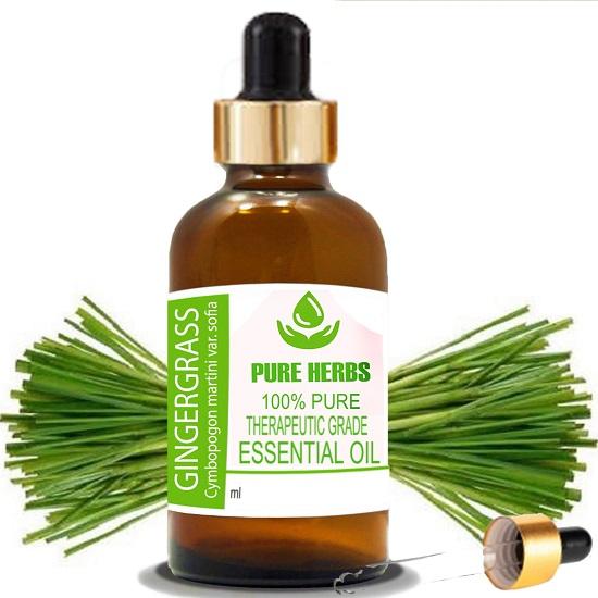 Pure Herbs Ginger Grass (Cymbopogon martinii) Pure & Natural Therapeutic Grade Essential Oil Glass