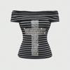 Summer punk retro street cross hot diamond one shoulder striped slim fit top