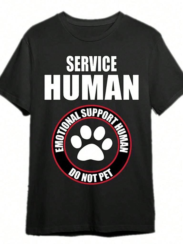 Funny Service Human Emotional Support Humor TShirt for Men Casual Short Sleeve Graphic Tee with Paw Print Design