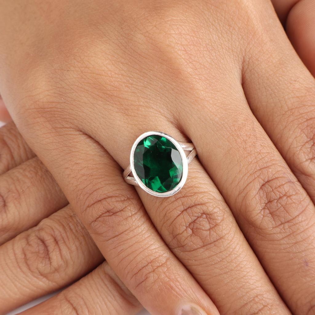 Gema Diópsido de Cromo Plata de Ley 925 Joyería Hecha a Mano Anillo de Diseñador Para Regalo de Aniversario RR-80-14