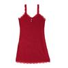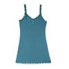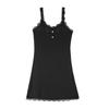 Women's Elegant Lace Trim Ribbed Nightdress Sleeveless V-Neck Button Decor Slip Dress Comfortable Sleepwear & Loungewear