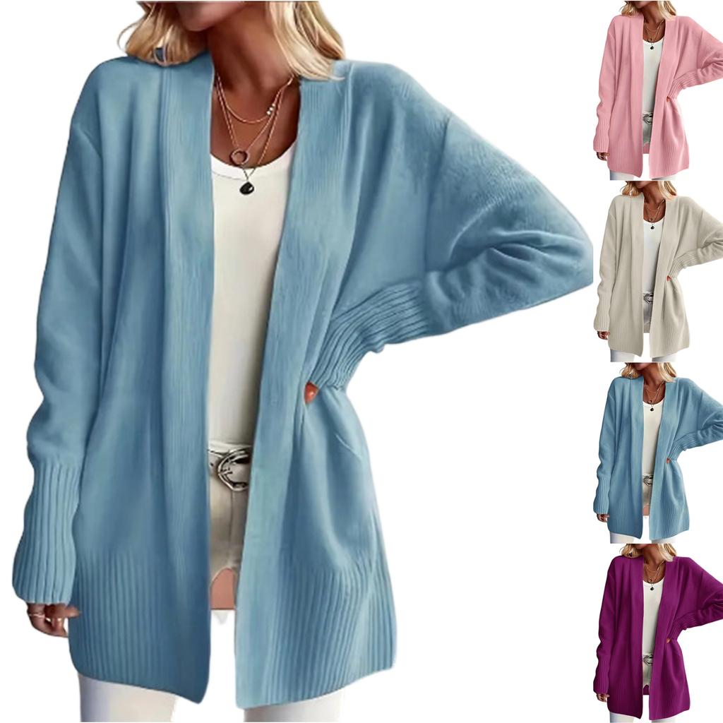 Women's Long Sleeved Color Medium Length Knitted Cardigan Jacket Sweater Knitted Sweater