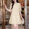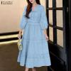 ZANZEA Women Casual Round Neck Short Sleeve Patchwork Lace Crochet Dress