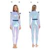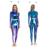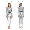 S-3XL Womens Alien Robot Astronaut Cosplay Jumpsuit with Headwear Long Sleeve Full-body Metallic Shiny Unitard for Halloween Theme Party