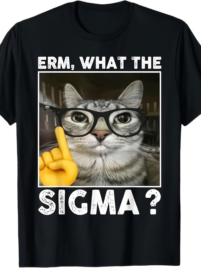 EnS Funny Cat Learning Graphic TShirt ERm What The Sigma Black Tee with Glasses Cat Design Everyday Shirt for Cat Lovers
