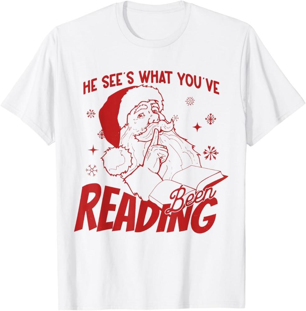 He Sees What You've Been Reading Santa Bookish Christmas T-Shirt Unisex T-Shirt