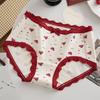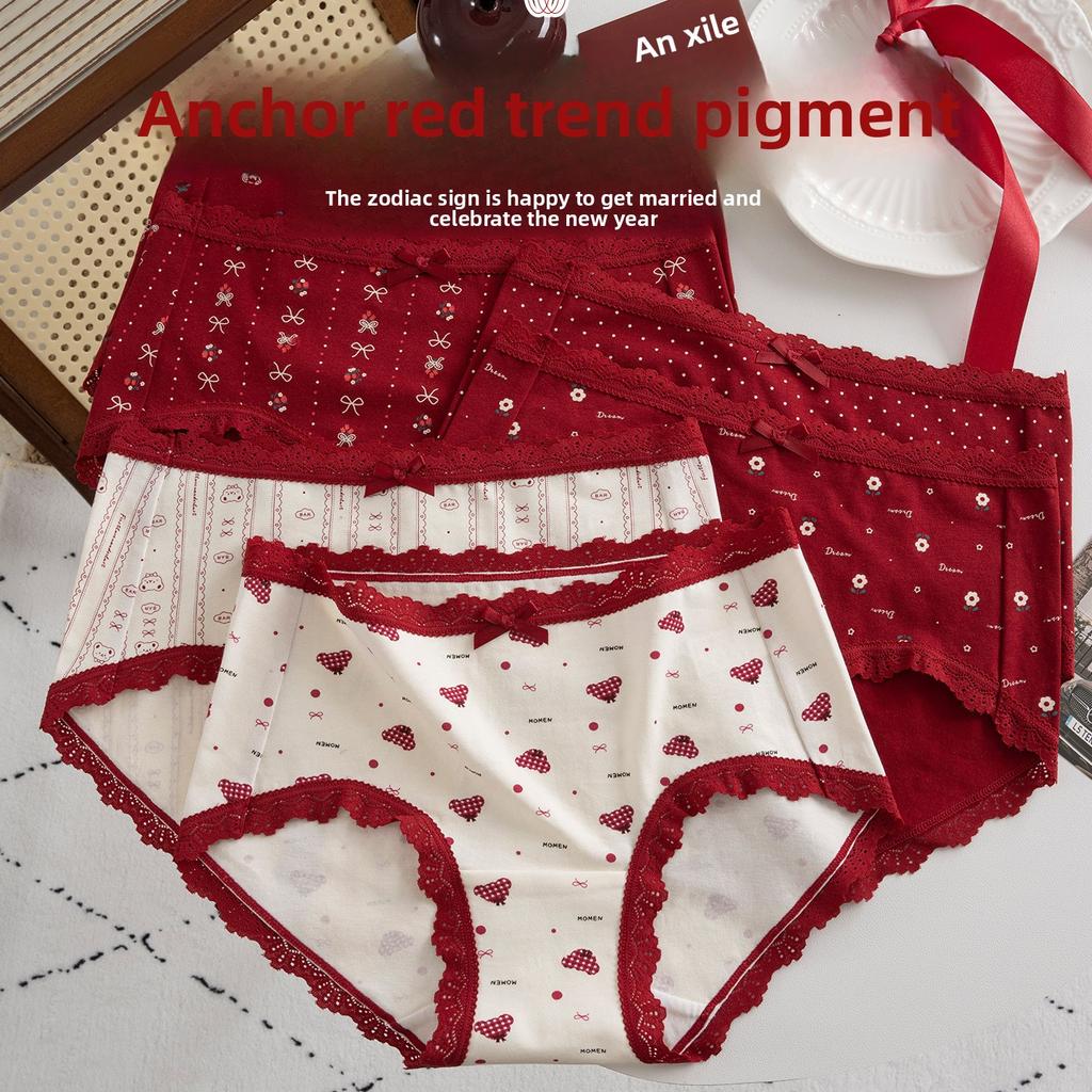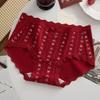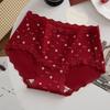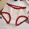Plus Size Lady Spring and Summer Wedding Celebration Red Lace Cotton Extended Middle Waist Triangle Briefs