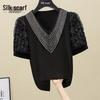 Camiseta de Moda para Mujer Sibaishere con Volantes de Pedrería y Patchwork