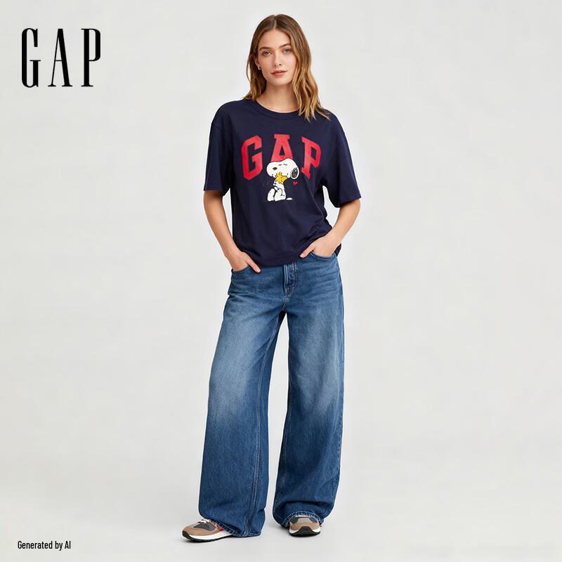 GAP Women's Logo Cartoon Print Short Sleeve T-Shirt